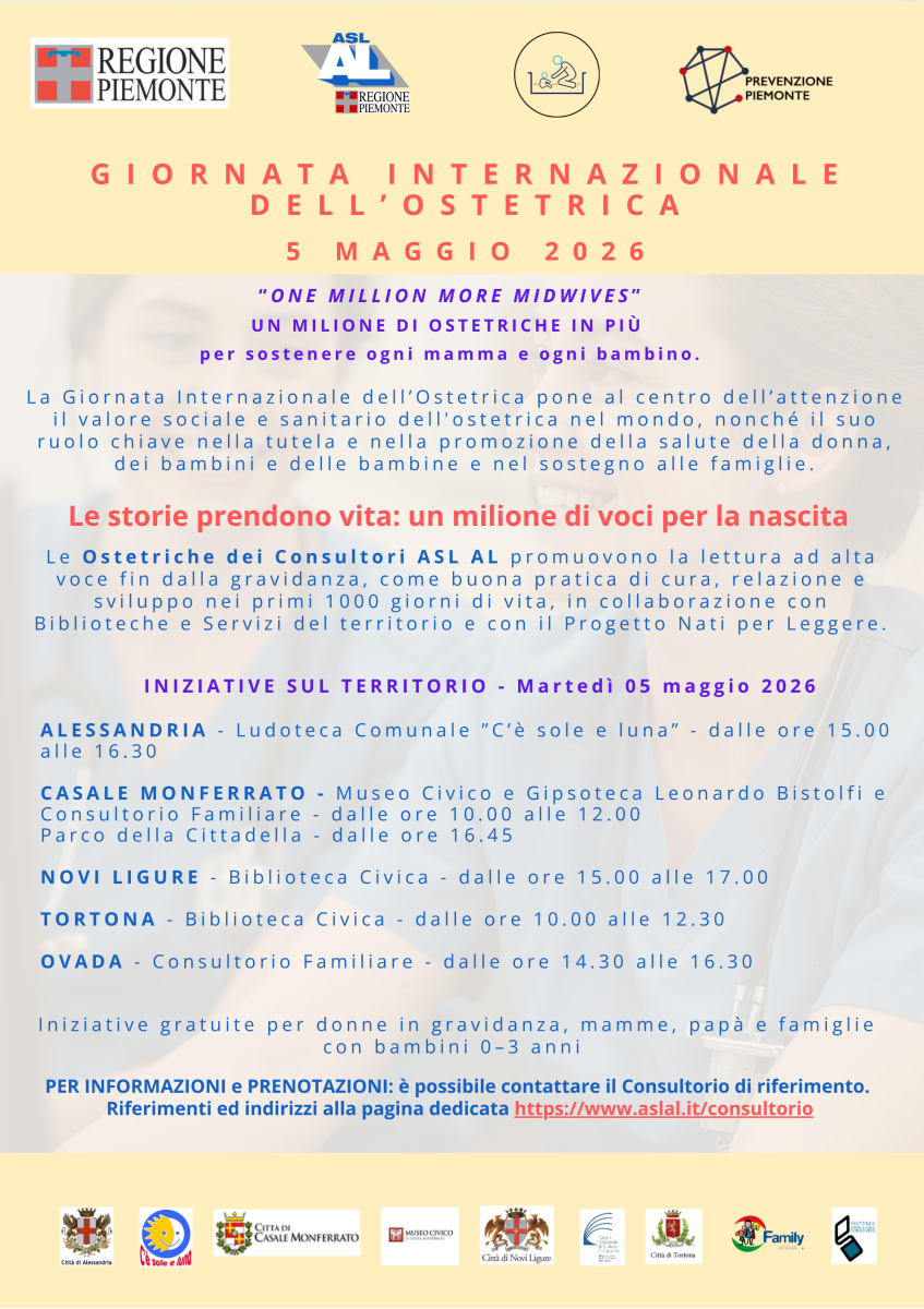 Per celebrare la Giornata Internazionale dell’Ostetrica 2026, l’ASL AL ha scelto di mettere in evidenza le attività dedicate alla lettura precoce e al percorso “Nati per Leggere”, un impegno condiviso in modo stabile dai Consultori aziendali e dalle Biblioteche del territorio.