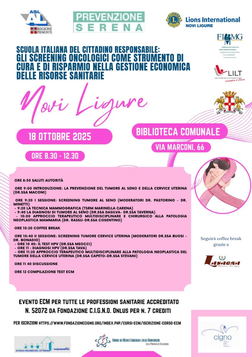 Scuola Italiana del Cittadino Responsabile. Gli screening oncologici come strumento di cura e risparmio nella gestione economica delle risorse sanitarie. Evento formativo